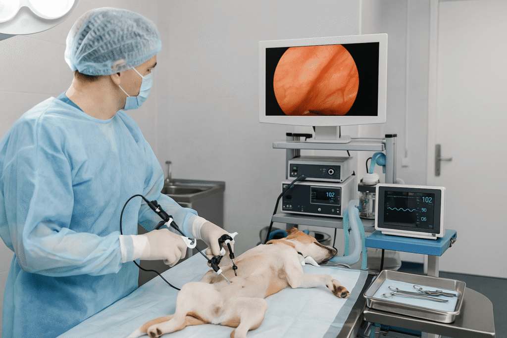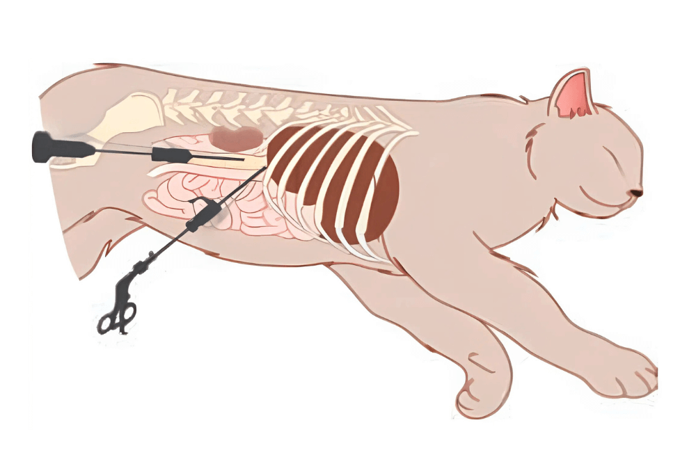 Laparoscopy is a modern surgical technique that avoids large incisions. A small tube with a camera (laparoscope) is inserted into your pet’s abdomen to give the vet a clear, real-time view of the internal organs. It can also be used to perform surgeries like spaying or to take biopsies, all while minimizing discomfort and downtime.